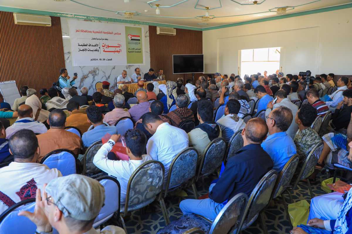 A political seminar organized by the Popular Resistance Council in Taiz Governorate stressed that protecting the achievements of the Yemeni revolutions is based on awareness, strengthening the will to persevere and challenge, broad alignment behind the national project, and supporting and developing the capabilities of the national army and the popular resistance.