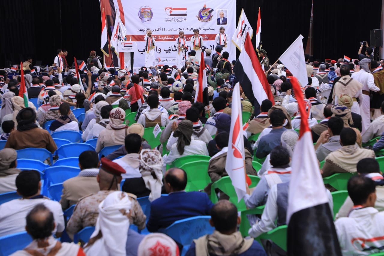 The Supreme Council of the Popular Resistance held a magnificent speech and artistic festival in Marib Governorate this morning, Monday, to celebrate the immortal national holidays: September 26, October 14, and November 30.