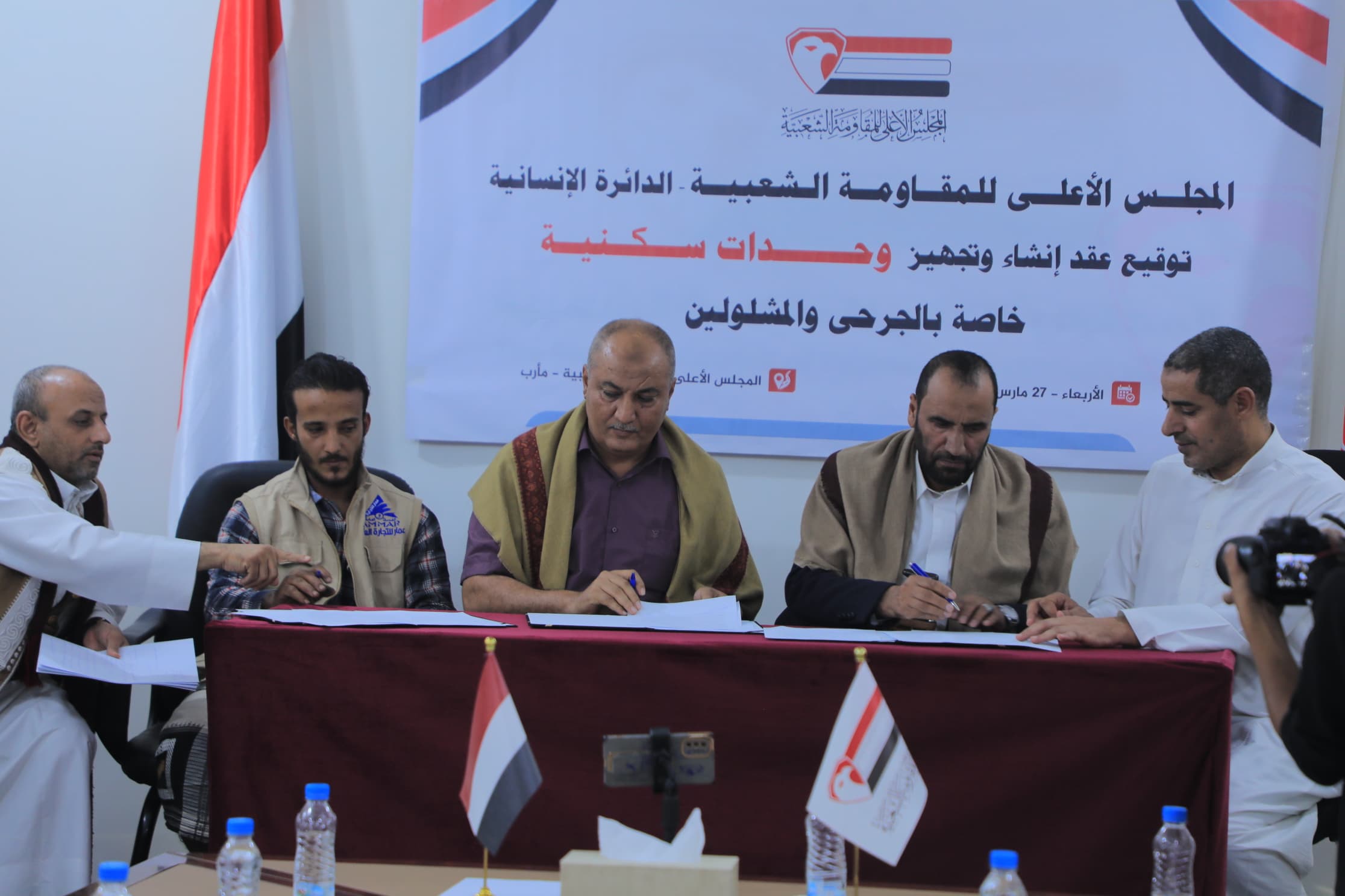 The signing event was attended by a number of heads and members of the Popular Resistance Councils in the governorates, the Deputy Chairman of the Military Medical Committee, Ali Al-Hadma, and the Director of the Technical Office of the Supreme Council in Marib, Engineer Anwar Al-Humairi