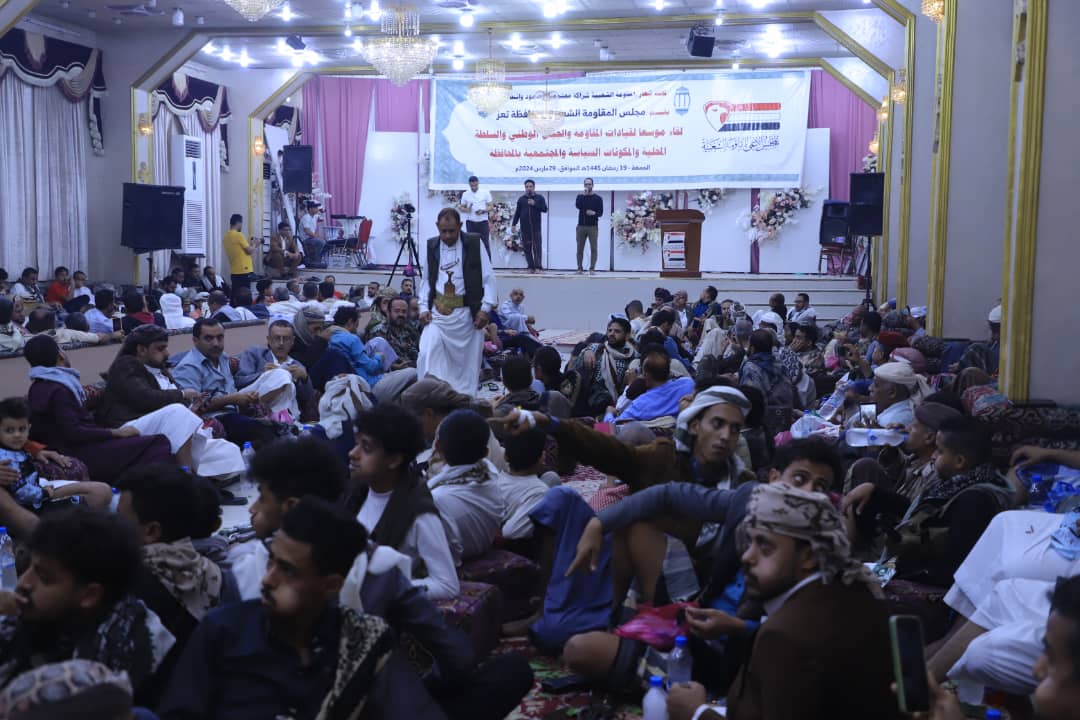 At the beginning of the evening, the head of the Supreme Council of Popular Resistance, Sheikh Hamoud Saeed Al-Mikhlafi, greeted the attendees, expressing his happiness at the rally of everyone in Taiz, their cooperation and cohesion to complete the liberation of the governorate as a main goal and one cannot be distracted by other projects and battles, in fulfillment of the blood of the martyrs and the wounded.