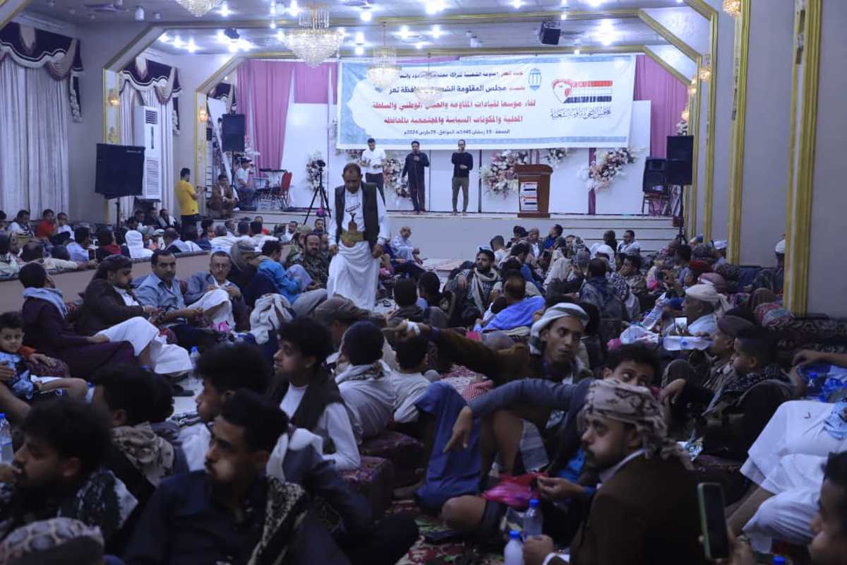 Under the slogan “Popular Resistance is a community partnership, steadfastness and victory,” the Popular Resistance Council in Taiz Governorate today held an expanded meeting for the leaders of the local authority, the National Army, and the Popular Resistance, in the presence of leaders and representatives of parties and political and community components in the governorate.