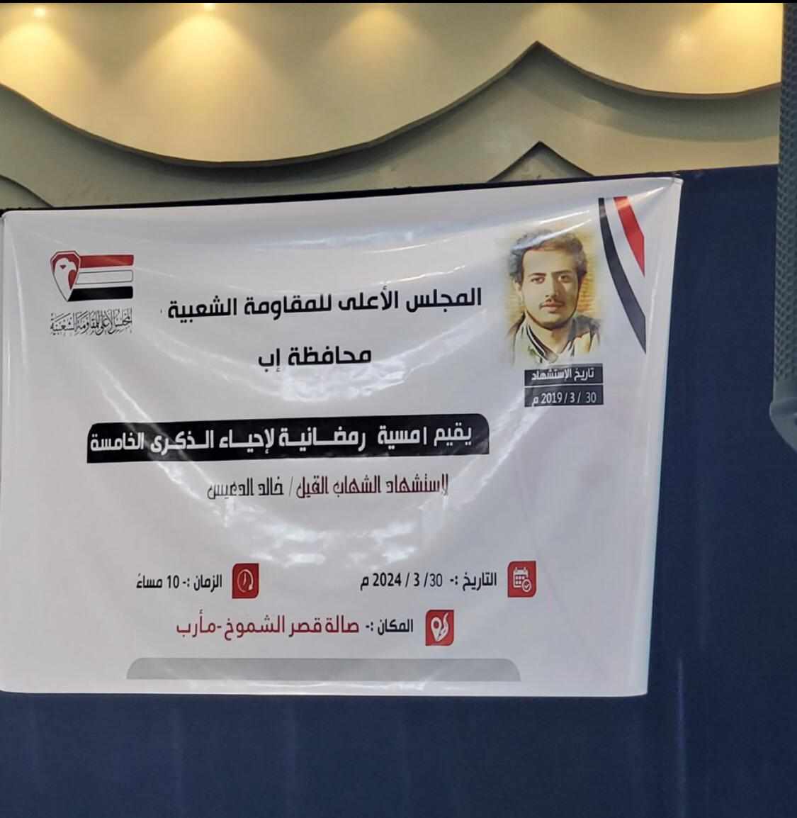 The Popular Resistance Council in Ibb Governorate held a Ramadan evening in commemoration of the fifth anniversary of the martyrdom of the hero Khaled Al- Doais, which coincides with March 30, 2024 AD.