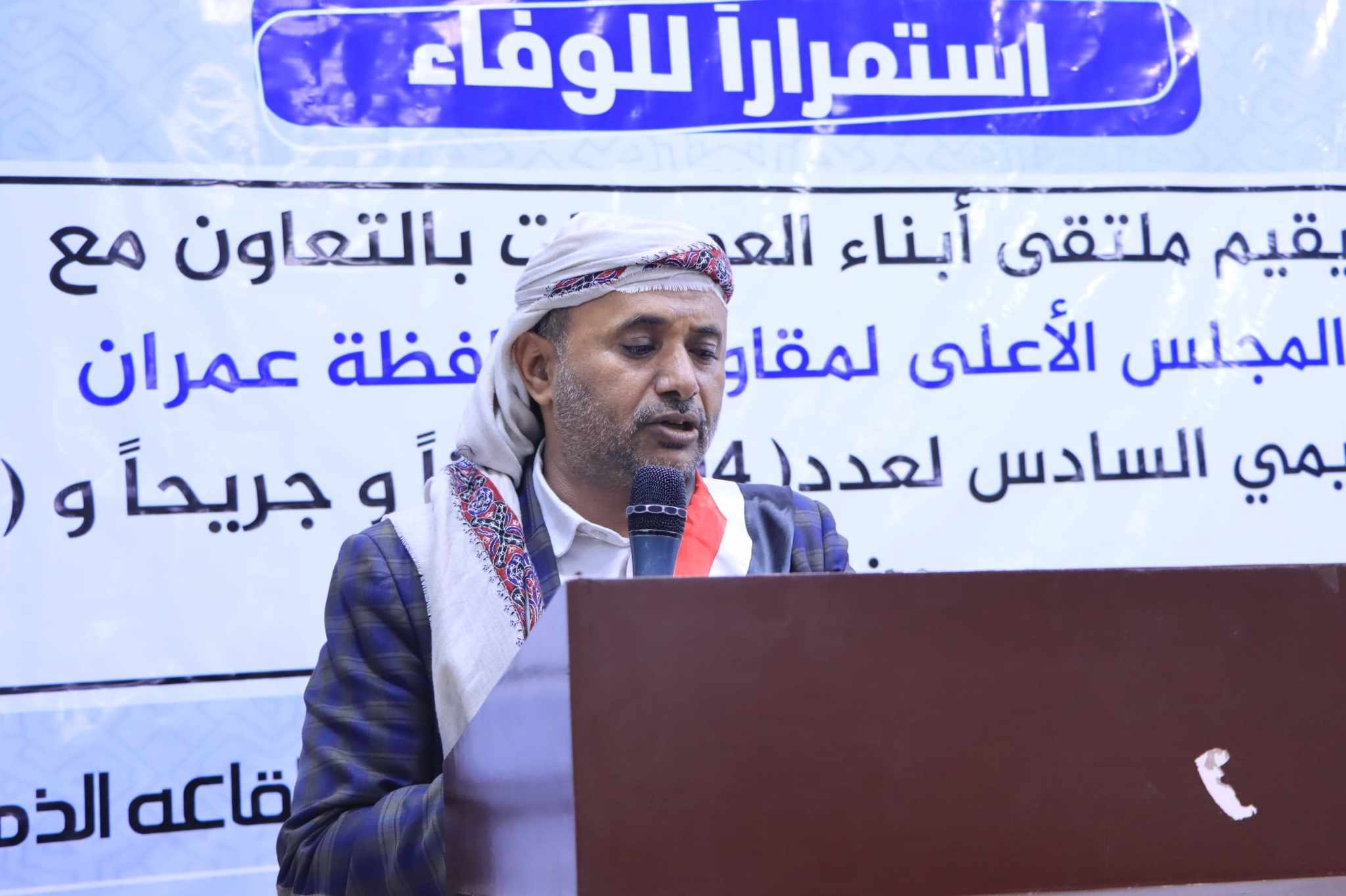 The head of the Amran Resistance Council, Sheikh Ali Al-Ghalisi, also delivered a speech in which he praised the efforts of the head of the Supreme Council of Popular Resistance, Sheikh Hammoud Saeed Al-Mikhlafi, in paying attention to the issues of the wounded.