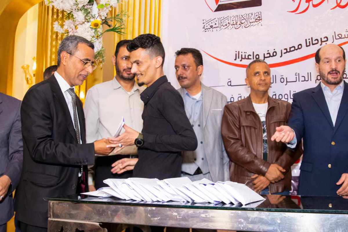 At the conclusion of the ceremony, the head of the political body of the Supreme Council of Popular Resistance, member of the House of Representatives, Dr. Abdul Karim Al-Aslami, his deputy, Sheikh Abdul Wahed Nimran, member of the body, Dr. Ali Al-Dhahab, and senior guests honored the wounded with sums of money and certificates of appreciation.