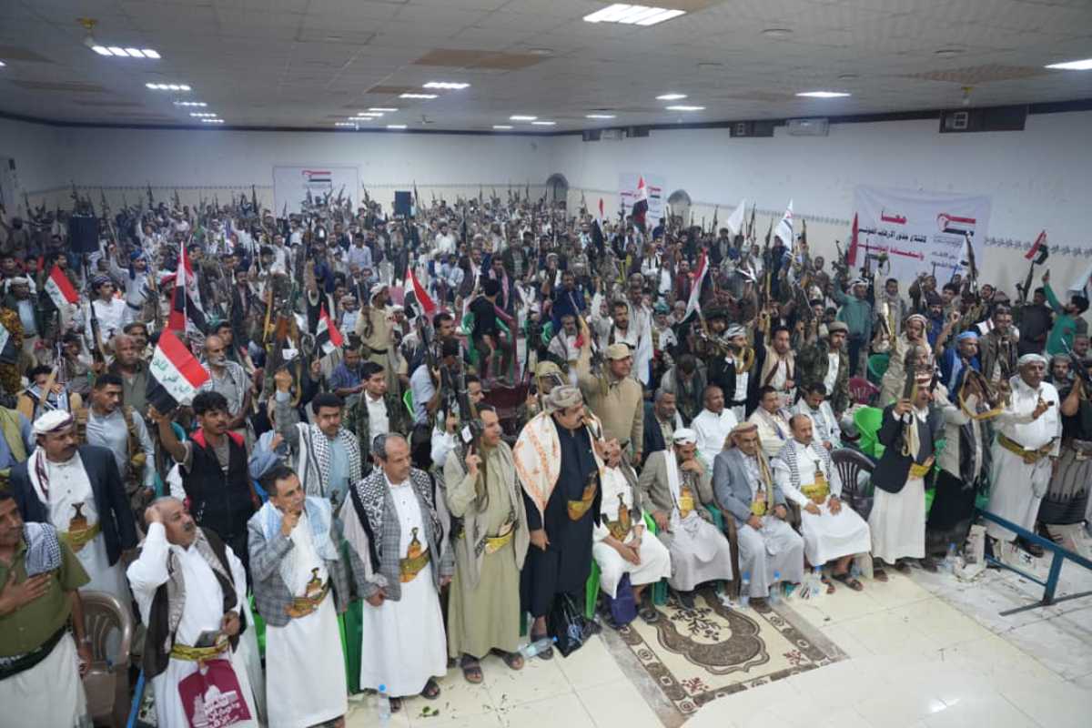 Sheikh Wasil Obaidi also delivered the scholars' speech, emphasizing that Yemen will not be subservient to Iran and the Velayat-e Faqih regime, and will remain, as it has been known throughout history, the Army of Reinforcements. Conquests and a cemetery for greedy invaders... calling on the Yemeni people to strengthen unity, unite and bring hearts together, avoid everything that disturbs Yemeni cohesion, and reject abhorrent racism and regionalism.
