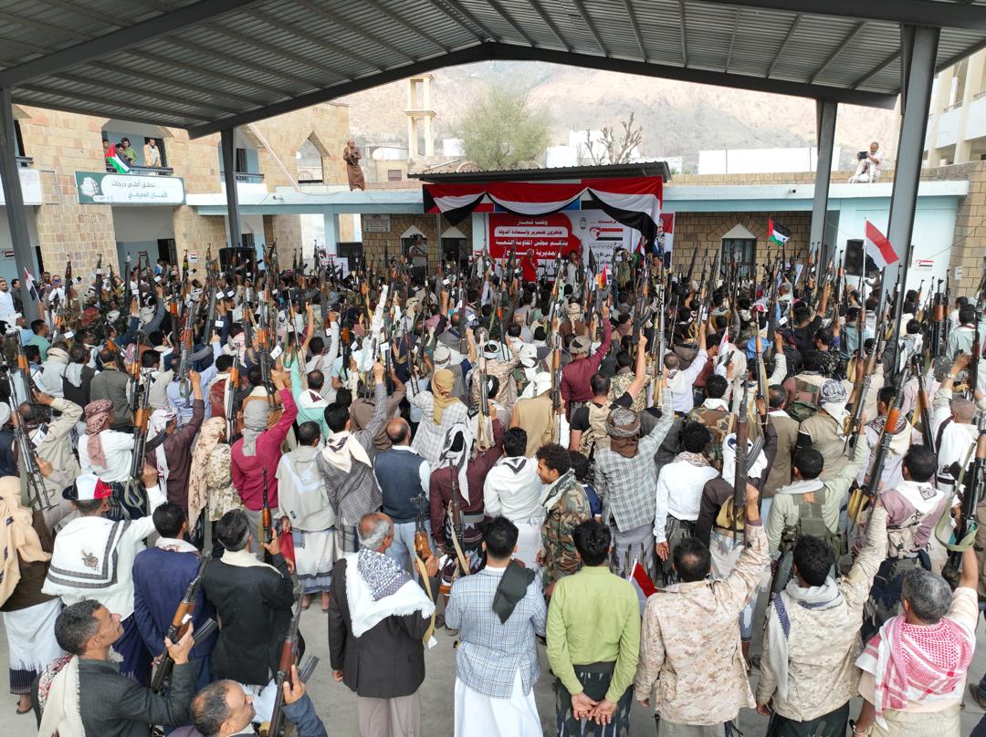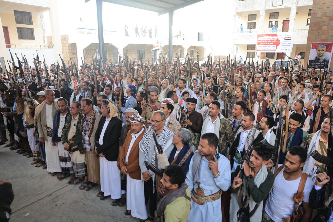 For its part, the Popular Resistance Council in Al-Masrakh District, in a speech delivered by Sheikh Mahmoud Hassan Al-Sabai, affirmed its readiness to continue the struggle until the state is restored and the Houthi coup is defeated. He also thanked the Supreme Council of the Popular Resistance and its leader, Sheikh Hamoud Saeed Al-Mikhlafi, for their efforts in championing the national cause.