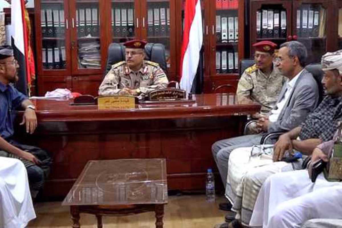 Following its arrival, the delegation of the Supreme Council of Popular Resistance visited the command of the Taiz Military Axis and was received by Major General Abdul Aziz Al-Majidi, acting commander of the axis, and Colonel Abdul Basit Al-Bahr, spokesman for the National Army in the axis