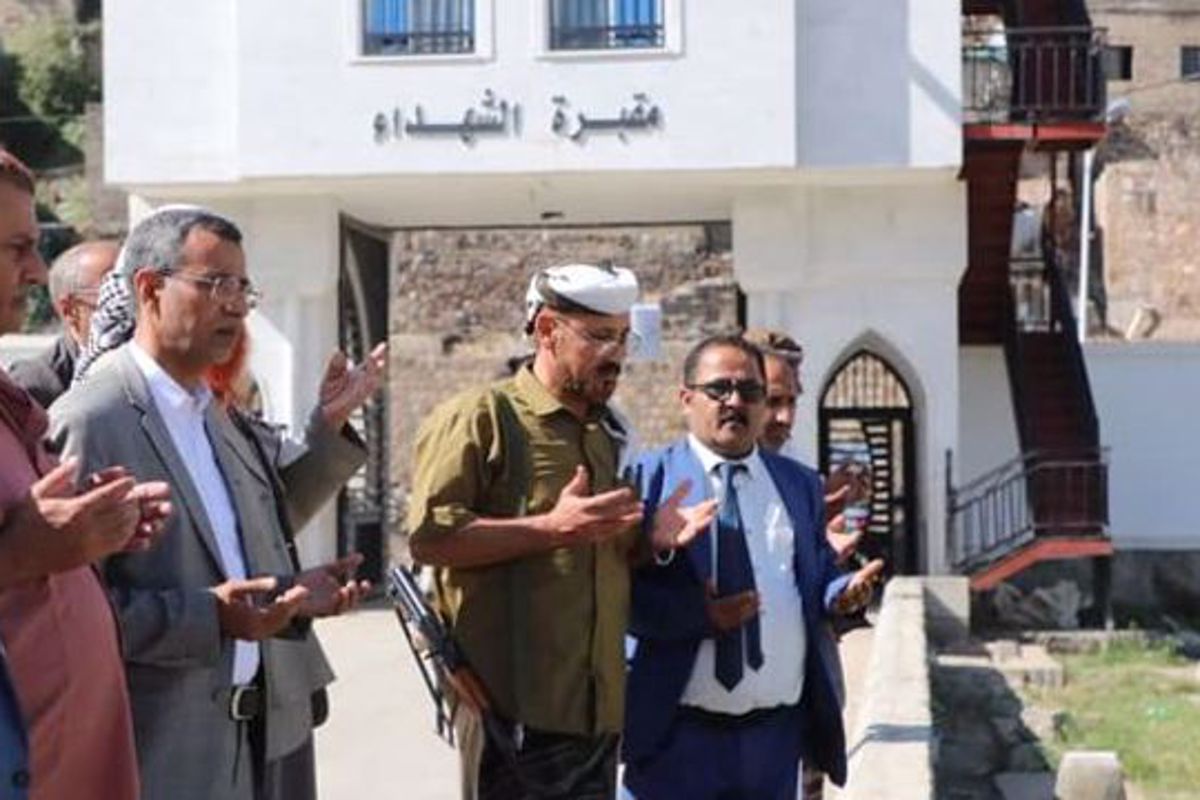 The delegation also visited the cemetery of the martyrs of the army and the resistance, which is within the framework of the project to complete the three stages of its rehabilitation by the Sheikh Hamoud Saeed Al-Mikhlafi Foundation, in order to organize it, fence it, rehabilitate it and protect it from floods, and Al-Fatihah was read to the souls of the martyrs