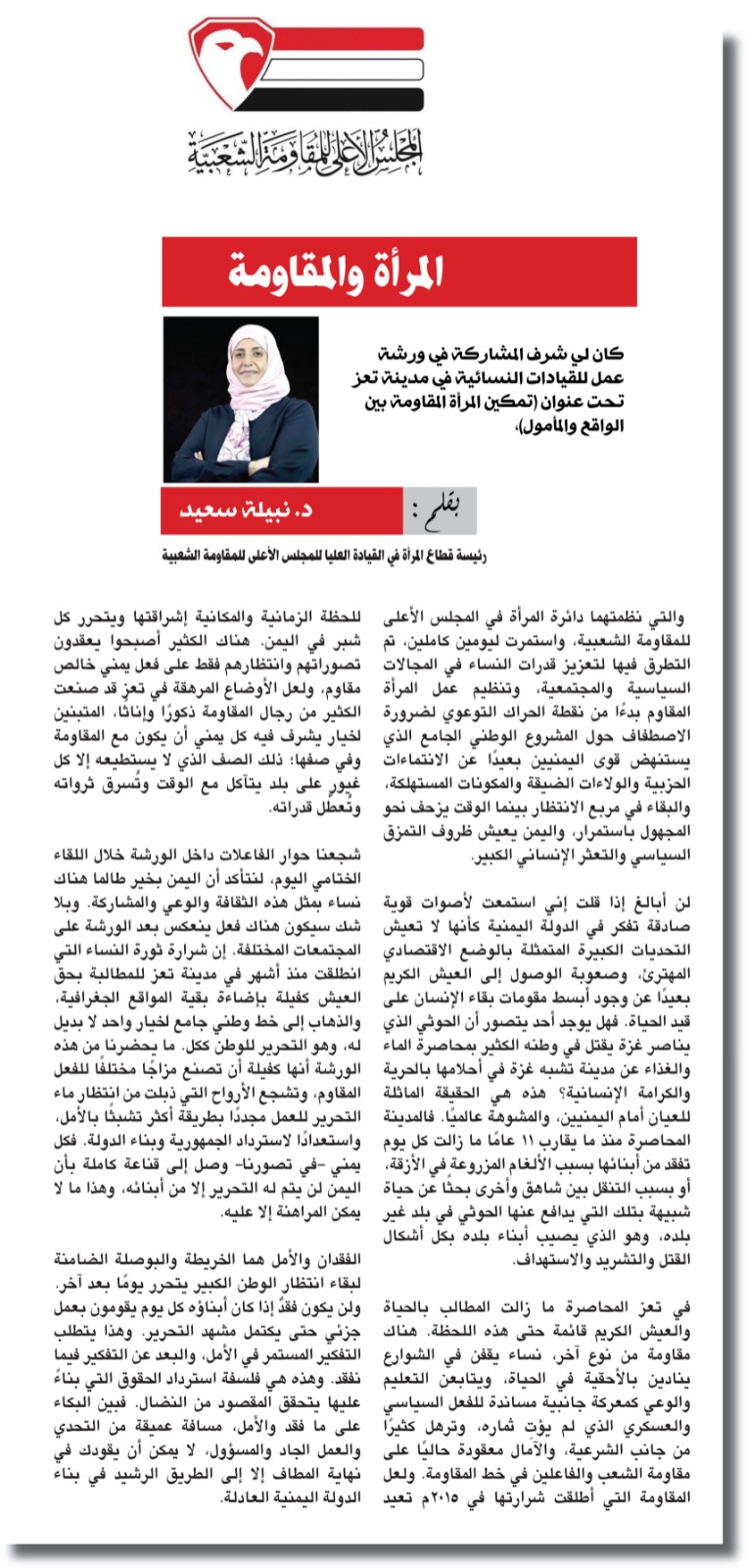 Head of the Women's Sector in the Supreme Command of the Supreme Council of the Popular Resistance